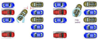 5. Setelah itu, langsung banting setir ke kanan. Sisakan jarak sedikit dengan barisan sebelah kanan, setelah itu banting lagi kekiri dan Maju Sedikit.